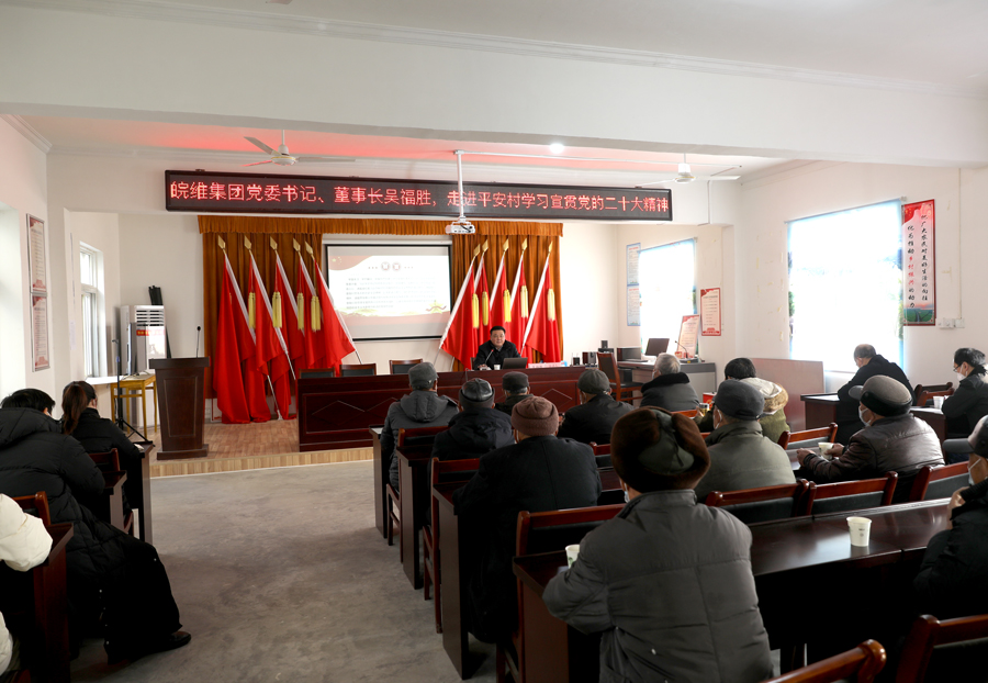 12月30日是2022年最后一个工作日,william英国中文官网公司党委书记、董事长吴福胜不辞辛苦,从繁忙的事务中抽身,前往槐林镇平安村,为平安村党员宣讲党的二十大精神,调研全年乡村振兴工作。集团公司党委副书记张正和,公司办公室、党委工作部负责人陪同。