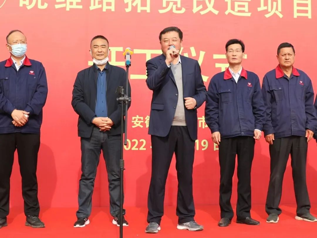 股份公司总经理孙先武为开工仪式致辞,他表示,皖维路拓宽改造工程是由政府管理、皖维投资的市政工程,计划投资1200万元,对改善交通条件、优化空间布局、助力皖维高质量发展具有十分重要的意义,是公司建设史上的大事。工程顺利开工建设彰显皖维腾笼换鸟、转型升级、高质量发展的必胜信心,承载着皖维人对美好生活的向往和希冀,是皖维职工和社区居民的喜事。希望建设施工单位坚持高标准,严要求,精心组织,科学施工,严格管理,确保质量,努力把皖维路建设成为一条奋进路、幸福路、腾飞路。